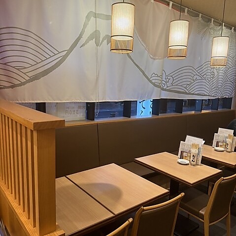温かみのある外観と落ち着いた雰囲気の内観が魅力です。店内は和を基調とした落ち着いた空間で、テーブル席を中心にゆったりとお過ごしいただけます。ご友人との気軽なランチから、大切な方とのお食事など様々なシーンでご利用いただけます。
