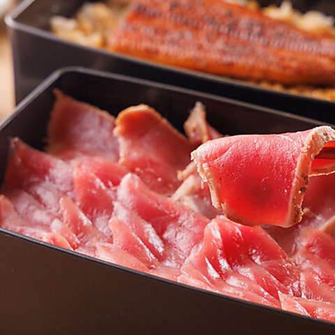 三重県近海で獲れた新鮮な生マグロが楽しめるのも、当店の魅力のひとつです。なめらかな舌触りと濃厚な旨味を存分にお楽しみいただけます。鰻と鮪の両方を堪能したい時は、香ばしい風味が食欲をそそる「蒲焼きと炭火炙り鮪重」をどうぞ!