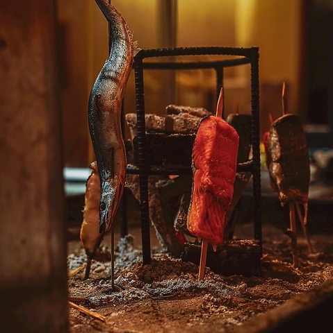 お客さんの目の前で炙る藁焼き・原始焼きは絶品です。高知県から直送の鰹などを使用しております。