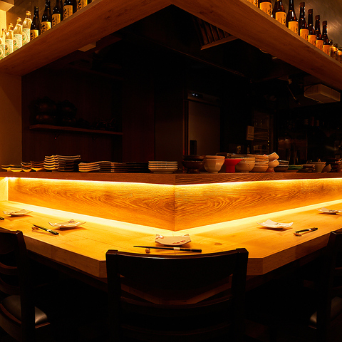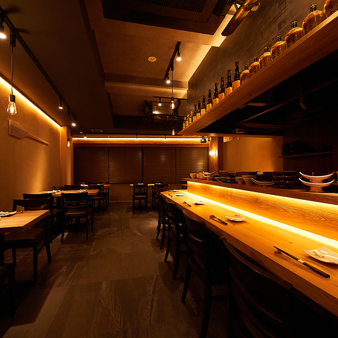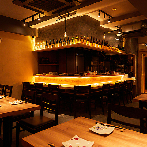デザイナーが造り上げた店内はオープンキッチンに面したカウンター席が特徴。シックなデザインの内装は、街の喧騒を忘れて当店自慢の逸品料理をお楽しみいただけます。お仲間との語らいや、おひとり様やデートでのご利用にもお気軽にご利用ください。【町田/居酒屋/炉端焼き/土鍋ご飯/創作料理/飲み放題/貸切/宴会/デート】