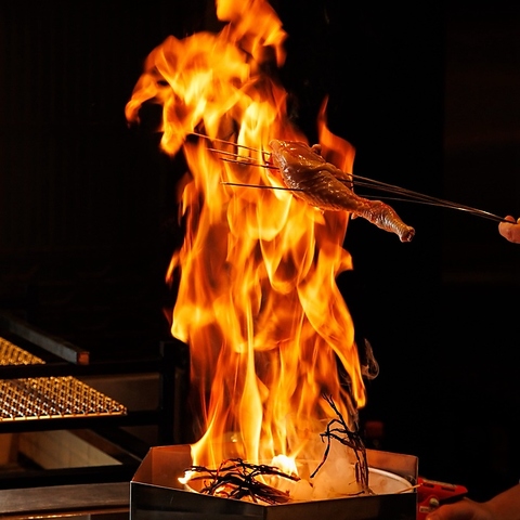 【これは外せない!五感で楽しむ極上の逸品】豪快な炎で仕上げる、香ばしさ際立つ自慢の藁焼き