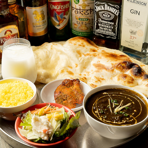 焼きたてナンと選べるカレーに、ライス・サラダ・チキンティッカ・ソフトドリンクまで付いたお得なセット。香ばしいナンとスパイシーなカレーの組み合わせは抜群で、ディナーにぴったり♪インド料理を気軽に楽しめるボリューム満点の内容です