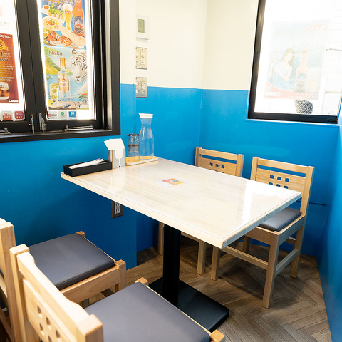 少人数のグループに最適な4名席。友人同士や家族での食事に便利で、賑やかさと落ち着きがバランスよく楽しめます。
