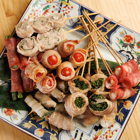 シャキシャキ新鮮なお野菜をジューシーなお肉で贅沢に包んだ、当店自慢の野菜巻き!ひと口かじれば、野菜の甘味とお肉の旨味が絶妙にマッチして、やみつきになる美味しさ!アスパラやトマト、レタスなど彩りも鮮やかで見た目も華やかだからSNS映えも抜群!女子会や宴会にもオススメ♪ヘルシーなのに満足度◎の逸品です!