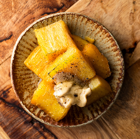 ロベルト風のフライドポテト!薄切りのジャガイモを重ねたミルフィーユポテトにアンチョビバターを乗せて