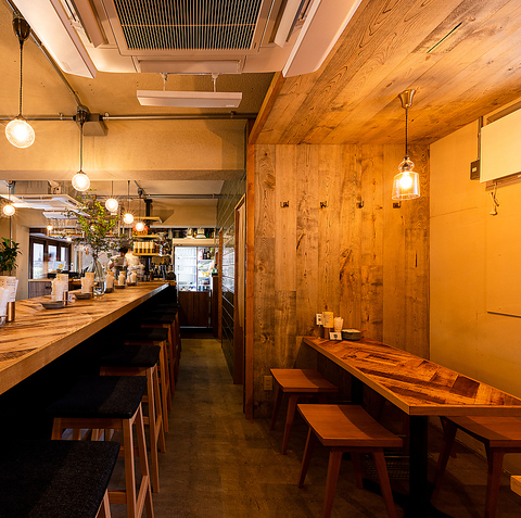 入り口付近には2名用のカウンター席が2つあり、気軽に立ち寄るのにぴったりな人気席です♪