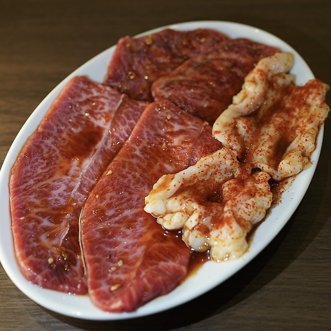 横浜場末の町焼肉「松翔苑」の人気名物が蒲田店でも楽しめます!肉の卸が営む当店では、上質な和牛をリーズナブルにご堪能いただけるコースを多数ご用意しております♪写真は一例です。
