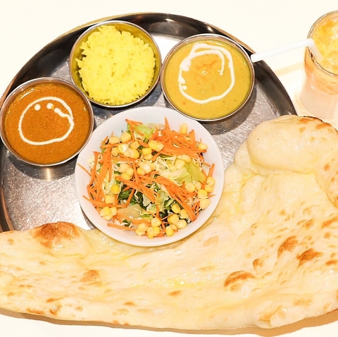 ハズレの無い定番メニューです!2種のカレー、ナン・ライス、サラダ、ソフトドリンクがついて1000円!