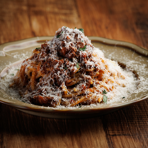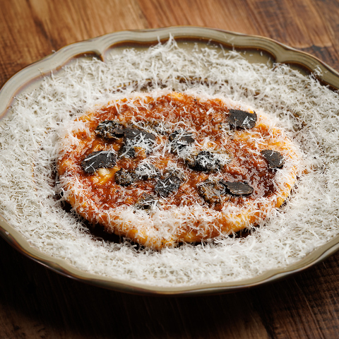 当店のパスタには、浅草開化楼・不死鳥カラス氏が開発した特製「低加水パスタフレスカ」を使用しております。小麦本来の豊かな風味と、噛むほどに感じられる独特のコシと弾力が特徴。ソースとの絡みも抜群で、一口ごとに素材の旨みを引き立てます。ここでしか味わえない極上の食感と香りを、ぜひご堪能ください。