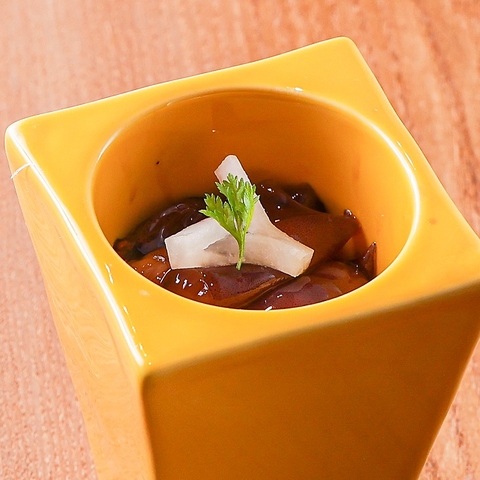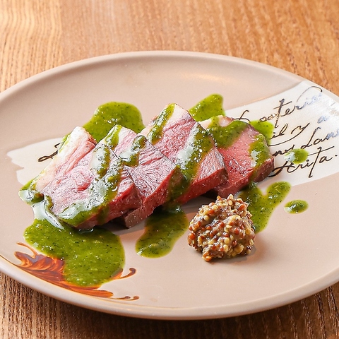 じっくりと火入れした和牛ローストを、爽やかな山葵で和えた一皿。肉の旨みを引き立てる香りと辛みが絶妙で、後味は驚くほど軽やか。上質さを感じながらも、箸が止まらない贅沢な味わいをぜひご堪能ください。