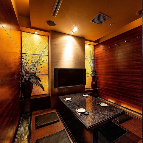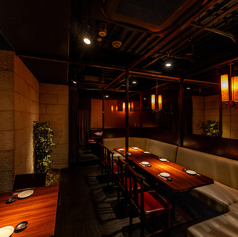 ゆったりとした個室で当店名物料理を。当店の席のタイプは、掘りごたつ個室・ソファー個室・カップルシートと3種類ご用意しております。落ち着いた和の雰囲気と柔らかな照明がゆったりとした空間を演出します。都会の喧騒から離れ、安らぎの時間をお過ごしください。