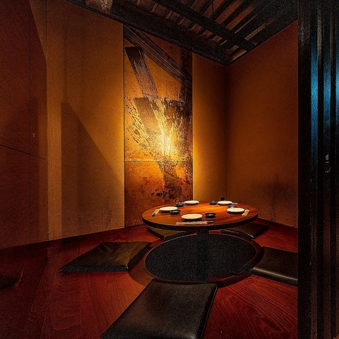 丸テーブルを囲んで皆様で顔を見合わせながら、落ち着いた雰囲気の中でゆったりとお過ごしいただけます。少人数での飲み会・宴会やデートなどにおすすめです。
