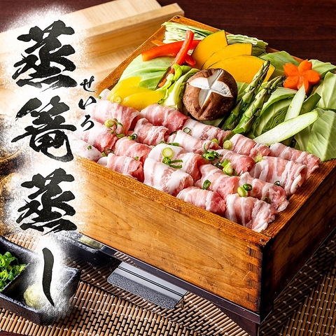 上質な檜を使用した”蒸籠蒸し料理”どれも素材本来の旨味やコクを五感でお楽しみいただける名物料理です。