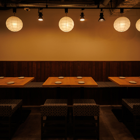店内はテーブル席となっており、お席は自由にレイアウト変更可能!2名から最大16名様までご予約を承れますので、会社宴会や合コンなどの宴会にも人気です♪宴会に便利な2時間飲み放題付のコース料理もご用意しておりますので、心行くまでお酒とお料理をお楽しみください♪