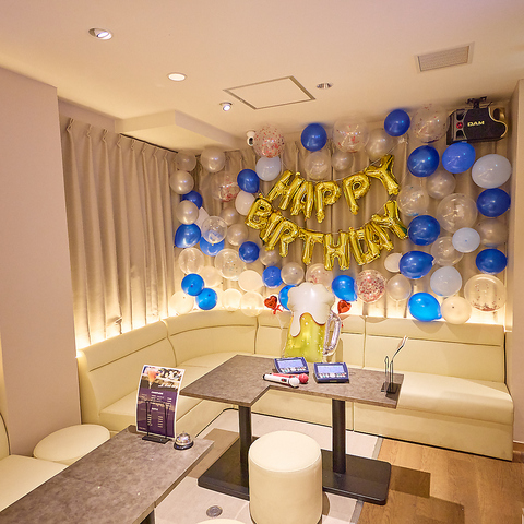 飾り付け自由のパーティースペースでは、誕生日や記念日・宴会等でもお楽しみいただけます。カラオケ/マイクなどの設備も充実しておりますので是非一度お試しください!