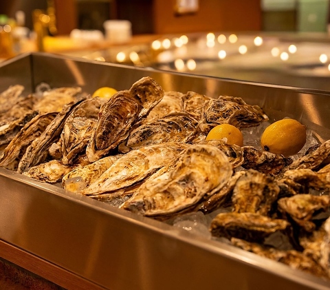 目の前で新鮮な牡蠣が並ぶライブ感と、香ばしい海の香りが五感を刺激。上質な一杯と語らいと寛ぎの時間を。