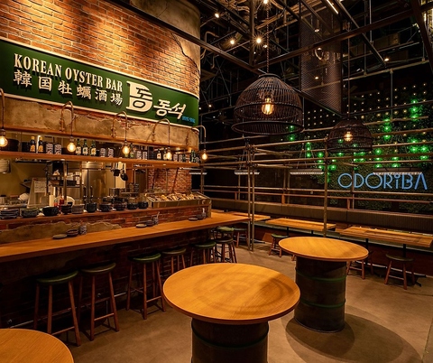 異国情緒あふれる煉瓦造りの空間が魅力の「韓国牡蠣酒場ドンソク」暖かみのある照明と木の質感が調和し、まるでソウルの屋台街を思わせる雰囲気の店内。新鮮な牡蠣と韓国料理を堪能できる、スタイリッシュな大人の社交場です。