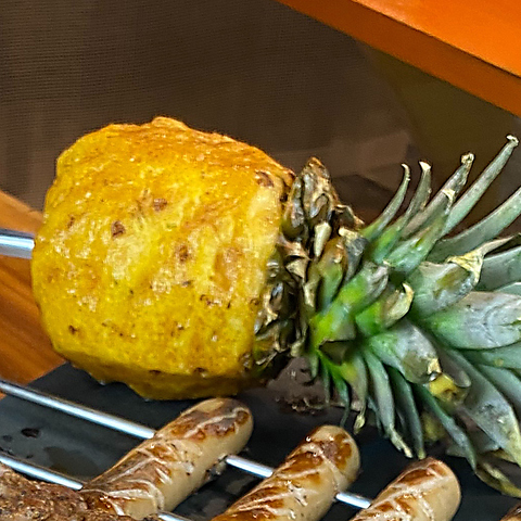 シュラスコのお肉だけでなく、専門店ならでは楽しめるアバカシ(焼きパイナップル)も人気メニューの一つです♪熱を加えることで甘さが増し、香ばしい香りが食欲をそそります。お肉の箸休めにぴったりで、口の中をさっぱりさせてくれます。お肉と一緒にぜひご堪能ください!