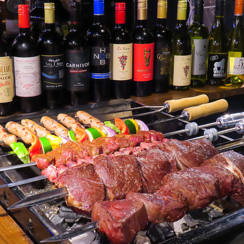 仲間内でのご宴会にもおすすめ!当店人気のイチボ、ランプ、パイナップル含む全7種のシュラスコと海老やロブスターも楽しめるコースをご用意。どのコースにも店長おすすめのペアリングワインがセット♪炭火で焼いたシュラスコを目の前で楽しみながらにぎやかな雰囲気をお楽しみください。