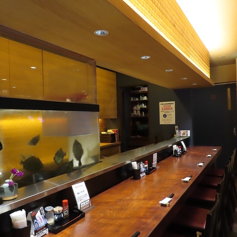落ち着いた雰囲気のカウンター席もあるので、1人でも気兼ねなく訪れられます。お仕事終わりにも◎