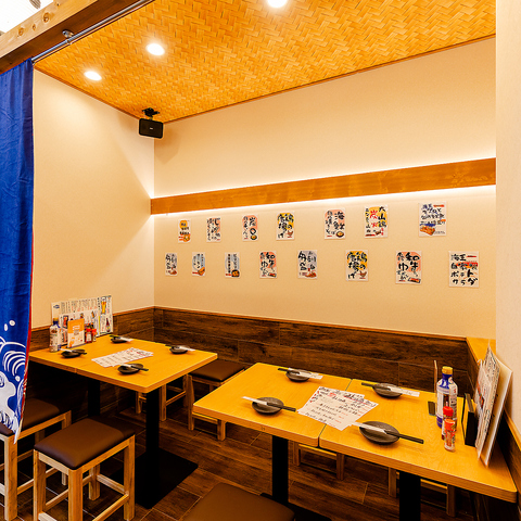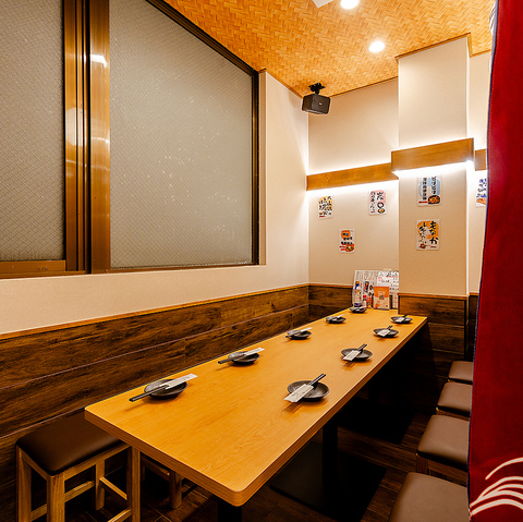 8名様までご利用いただけるテーブル個室は、仲間内での宴会や会社の集まり、ご家族でのお食事に最適です。扉付きのプライベート空間なので、周囲を気にせず会話を楽しめるのも魅力。ゆったりと座れるテーブル席で、旬の料理とお酒を囲みながら、にぎやかなひとときをお過ごしください。