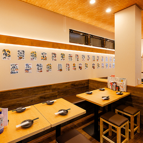 4名様用のテーブル席は、ご友人同士での飲み会やご家族でのお食事にぴったり。全員の顔を見渡しやすい配置で、自然と会話も弾みます。落ち着いた雰囲気の中で、旬の料理とお酒を囲みながら、ゆったりとした時間をお楽しみください。少人数での宴会や女子会にもおすすめです。