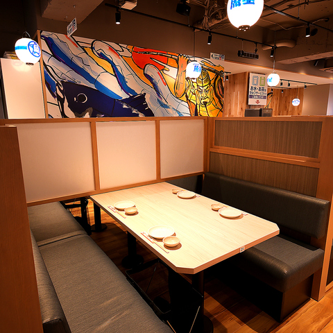 【お好みに合わせたお席をご用意】店内は心地よい温かみのある照明で、居心地抜群の雰囲気です。飲み会や女子会など、気の合う仲間と過ごすのにぴったりのテーブル席を人数に応じてご用意します。新鮮な海の幸とともに、リラックスした時間をお楽しみください。ご相談もお気軽にどうぞ!