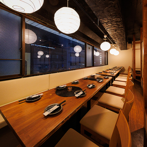 0から工事した店内はできたばかりなので清潔感もあって居心地は抜群!和の趣を感じさせる雰囲気の店内で備長炭を使用した炭火焼き料理をお楽しみください。広々とした完全個室も多数ご用意しております♪八重洲、日本橋エリアでの飲み会や宴会におすすめ♪(東京駅/八重洲/個室/居酒屋/焼き鳥/野菜巻き/飲み放題/歓送迎会/忘年会/新年会/宴会)