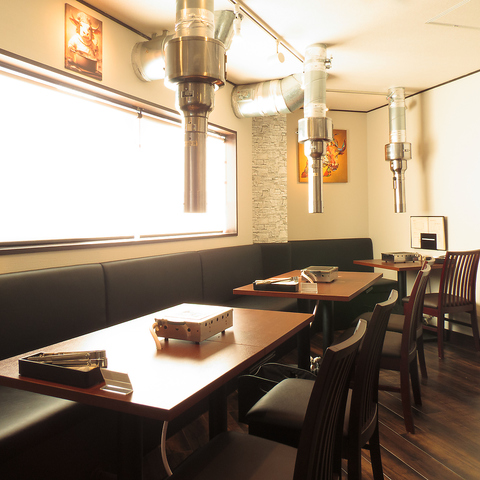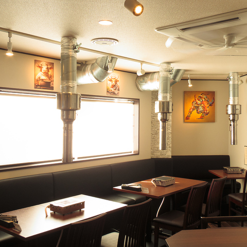 テーブル席には、強力な排気ダクトがあり、服に匂いがつきにくい工夫がされています。お洒落な店内で、美味しい山形牛を囲み、楽しいひとときをお過ごしください。