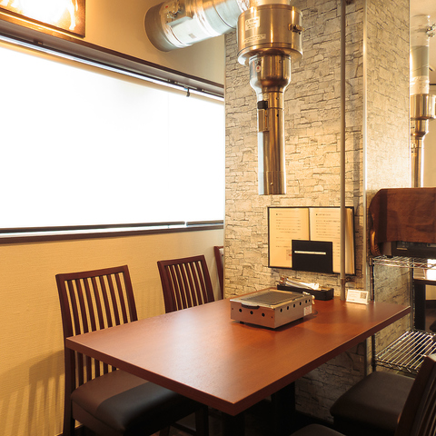 落ち着いた雰囲気のテーブル席は、ゆったりと焼肉をお楽しみいただける空間です。大切な方とのデートやご家族での食事会、接待など、様々なシーンでご利用ください。