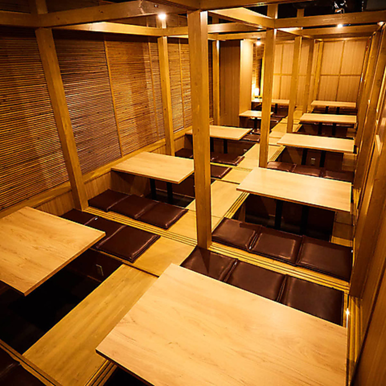 最大8名様までゆったりとお寛ぎいただけるテーブルタイプの個室となっております。ご接待、女子会、少人数でのご宴会、会社での飲み放題付きコースにも最適なお席となっております。4名様以上、60名様までのお客様もご相談頂けます。宴会にお得なクーポンもご用意しております◎!