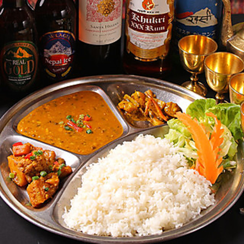 日本人に1番人気は、「ダルバートセット」。自家製豆カレーにサラダが付いたネパールの家庭料理です。