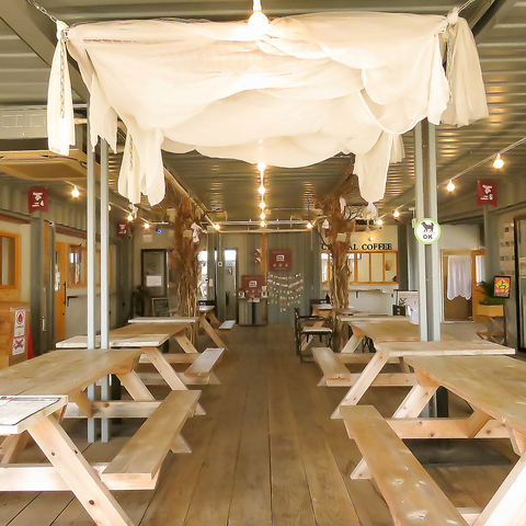 天気の良い日は開放的なテラス席で、自然の風を感じながら食事を楽しめます。雨の日でも安心して過ごせる室内席もあるため、どんな天候でも快適にご利用いただけます。