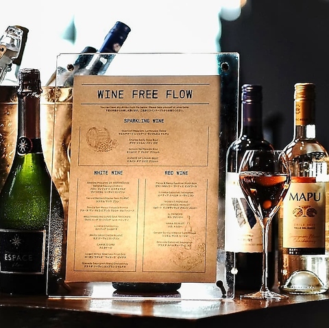 こだわりワインの数々がフリーフローで飲み放題