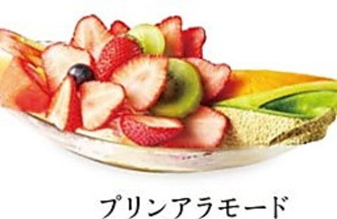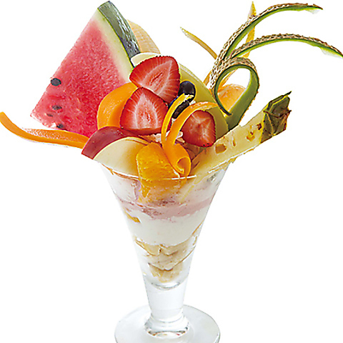 旬の果実をふんだんに使用した「フルーツパフェ」、セットでドリンクバーも追加可能◎