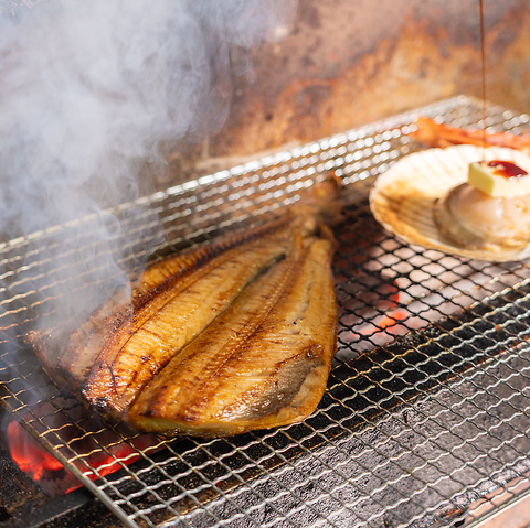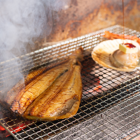 北海道の新鮮な海鮮や野菜、お肉まで豪快に炭火で焼き上げる当店の炉端焼きは440円~特大BIGサイズのほっけ、帆立バター、ズワイガニ、氷下魚や、銘柄鶏もも肉の一枚焼きなど!炭火で焼き上げることで素材の旨味を引き出します。鉄板人気のメニューをリーズナブルにお楽しみください<歓迎会・送別会・宴会・団体様歓迎!>
