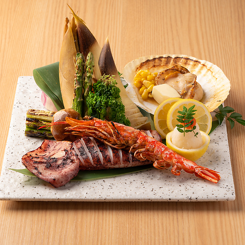 猿払産の帆立や羅臼産のホッケ、ズワイガニなど北海道ならではの新鮮な海鮮からラベンダーポークなどのお肉、鮮度抜群の野菜まで!炭火で焼き上げ、食材の旨味をぎゅっと閉じ込めます。