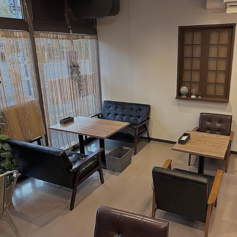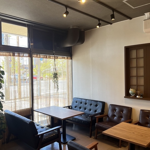 ゆったりと腰掛けられるソファー席をご用意しております♪心地よいカフェタイムをお過ごしいただくのに最適な空間です◎おしゃれな雰囲気の中で、ご友人との会話やリラックスしたひとときを存分にお楽しみください。居心地の良さを追求したこだわりの空間が癒しを提供いたします。女子会やカフェ利用などにおすすめです♪