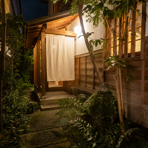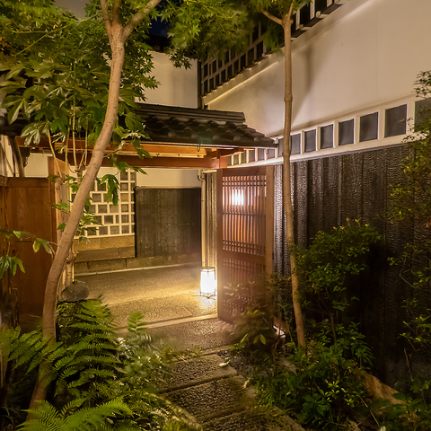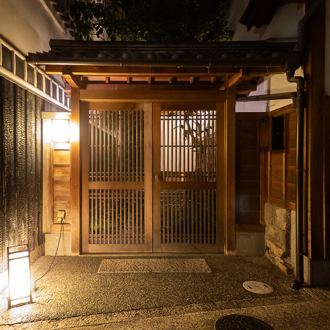 ふと見逃してしまいそうな、ひっそりと佇む隠れ家。控えめな外観は、知る人ぞ知る名店の証です。風情ある格子戸の向こうには、上質な空間が広がります。