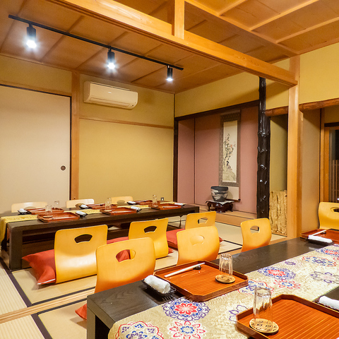 | 貸切 | 12名様×1 | 【貸切可能】全席個室仕様で、プライベート感を重視した設え。掘りごたつ式の座席で、足元からくつろげる快適な空間です。接待や大切な方との会食、団体でのご利用にも対応可能。静かに語らえるひとときをご提供します。 |