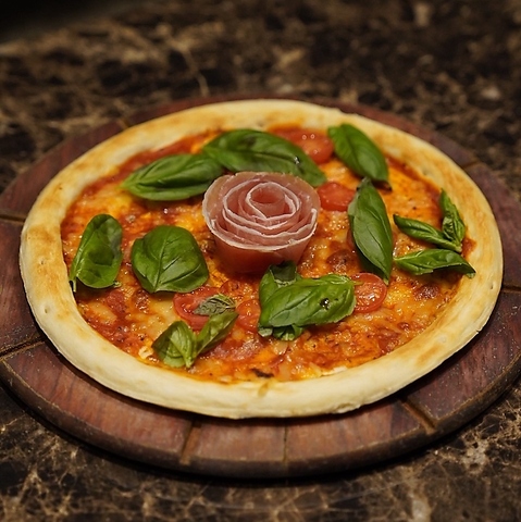 上質な生ハムの旨みと、ルッコラのほろ苦い香りが絶妙に調和。焼き立て生地の香ばしさと、とろけるチーズが包み込み、ワインとも相性抜群の大人の一枚です。生ハムを贅沢にトッピング!美しく、写真映えも抜群です。