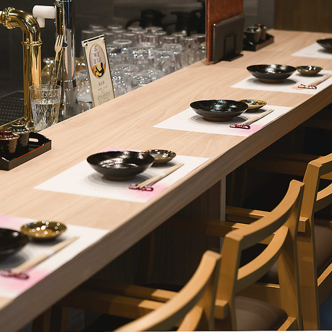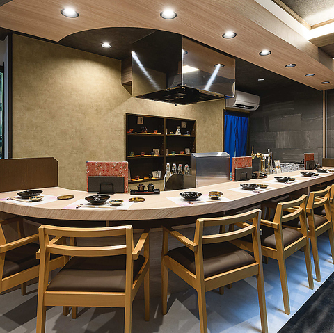 お一人様大歓迎のカウンター席となっております。目の前で調理の様子を見ることができる臨場感のあるお席が魅力。仕事帰りにサクッと一杯飲みたい時にもおススメです。お仕事を頑張った自分へのご褒美に美味しい割烹料理とお酒はいかがですか。