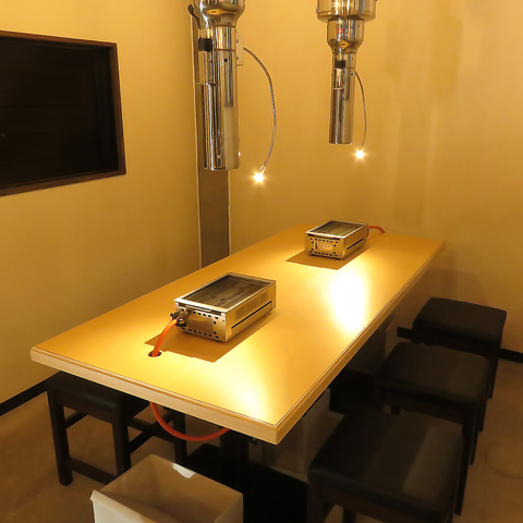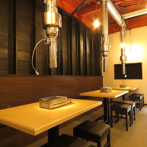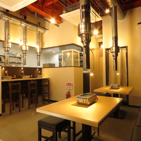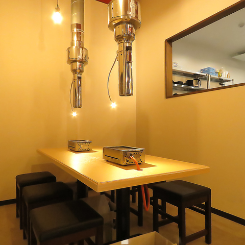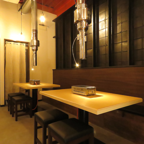 お一人様でのご利用にぴったりのカウンター席もご用意しています。専用のコンロと排煙設備が完備されているので、自分のペースでゆっくりと焼き肉を楽しめます。お仕事帰りや、ふらっと立ち寄りたい時に気軽にご利用いただけます。