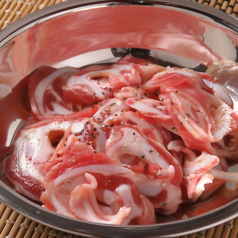 卸業者から直接仕入れることで実現した、鮮度抜群の上質な豚ホルモンです。ぷりぷりとした食感と、噛むほどに溢れるジューシーな脂の甘みがたまりません。特製の塩ベースの自家製タレとの相性も抜群で、ご飯もお酒も進むこと間違いなしの一品です。