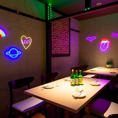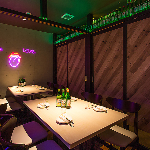 | 掘りごたつ | 4名様×2 | 受付もネオンで彩られ、エレベーターを降りると韓国空間をお届け! |
