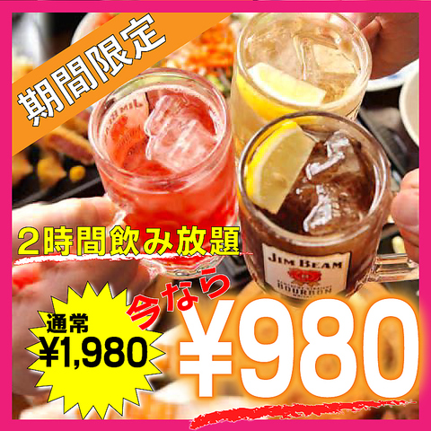 | 料金 | 宴会コースプランは全て下記の飲み放題がついております。今なら単品飲み放題1980円が期間限定で999円!! さらにクーポン利用でお得に!詳細はクーポンページをご覧ください。 |