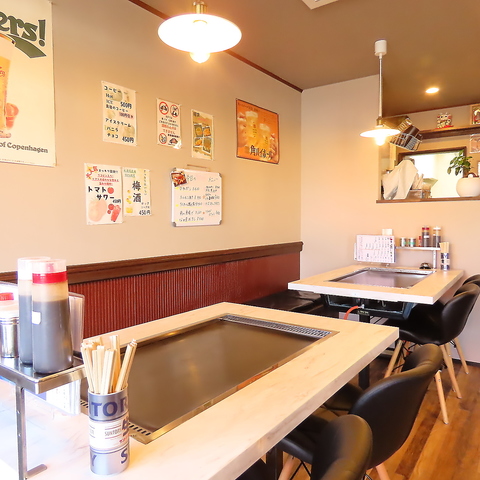 白を基調とした、清潔感のある明るい店内です◎全席に鉄板を完備したテーブル席で、ご家族やご友人とアツアツのお好み焼きをワイワイ楽しんでいただけます。美味しい料理と温かい雰囲気で、地域の皆様に愛されるお店を目指しています♪また店内は全席禁煙なので、安心してご利用できます。