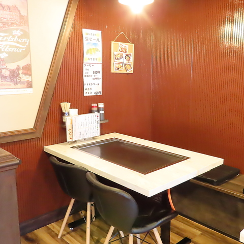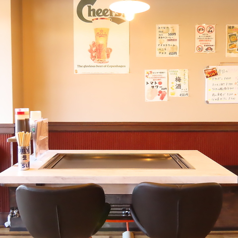| テーブル | 4名様×1 | ゆったりとした4名様用のテーブル席をご用意しています◎ご家族やご友人とのお食事に最適です。熱々の鉄板を囲んで、自慢のお好み焼きを心ゆくまでお楽しみください! |