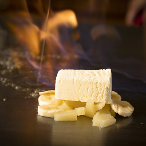 お誕生日やお祝いでは、鉄板焼きアイスクリームを無料プレゼント。ご予約時にお申し付けください。