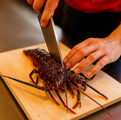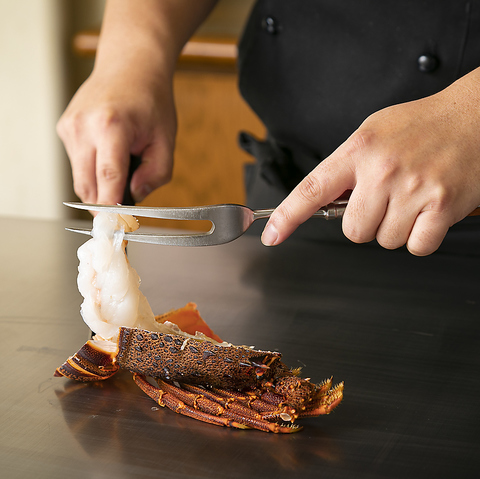 活・伊勢海老と伊勢海老味噌汁で、最高のお祝いを。乾杯ドリンク、名物・鉄板焼きアイスクリーム、チョコプレート(ご指定メッセージ入り)がセットの、記念日メニュー。7日前ご予約限定・ディナーのみのご提供。活・伊勢海老を半身でご提供のため、奇数の場合は+3000円(税込3300円)で一尾提供となります。